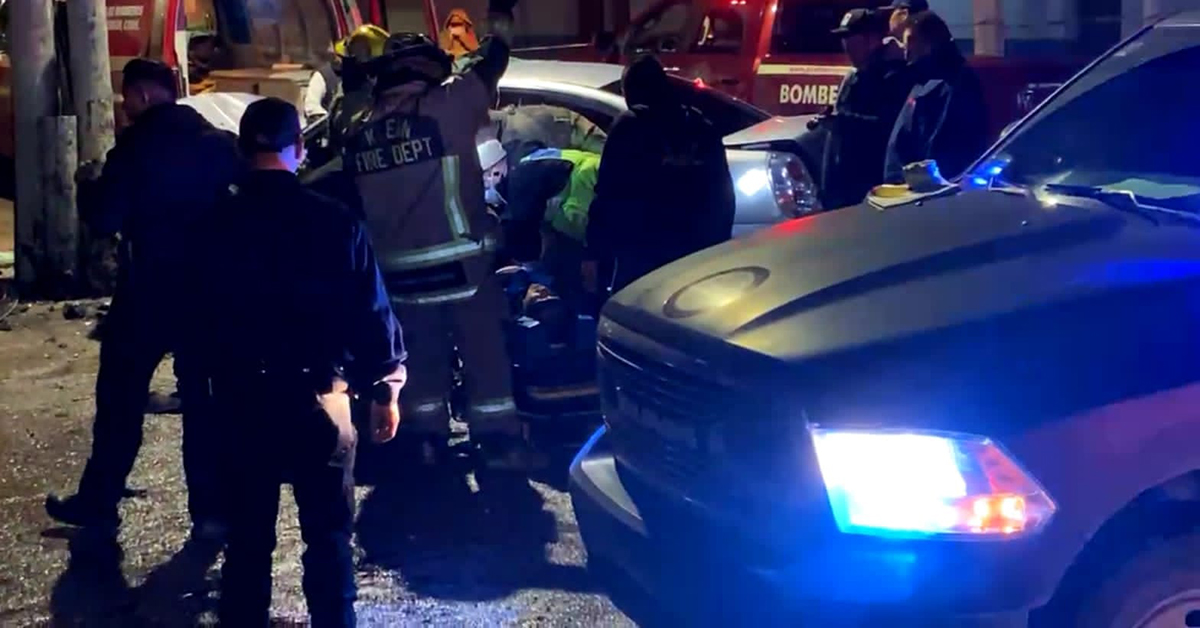 Prensado, impactado contra un poste y al borde de la muerte fue como quedó un automovilista debido a un choque contra un taxi y una camioneta X-trail en el sector de Villa de Fuente la tarde de este viernes. Fue necesaria cerca de media hora de trabajos con las “tijeras de la vida” para rescatarlo de los fierros retorcidos.