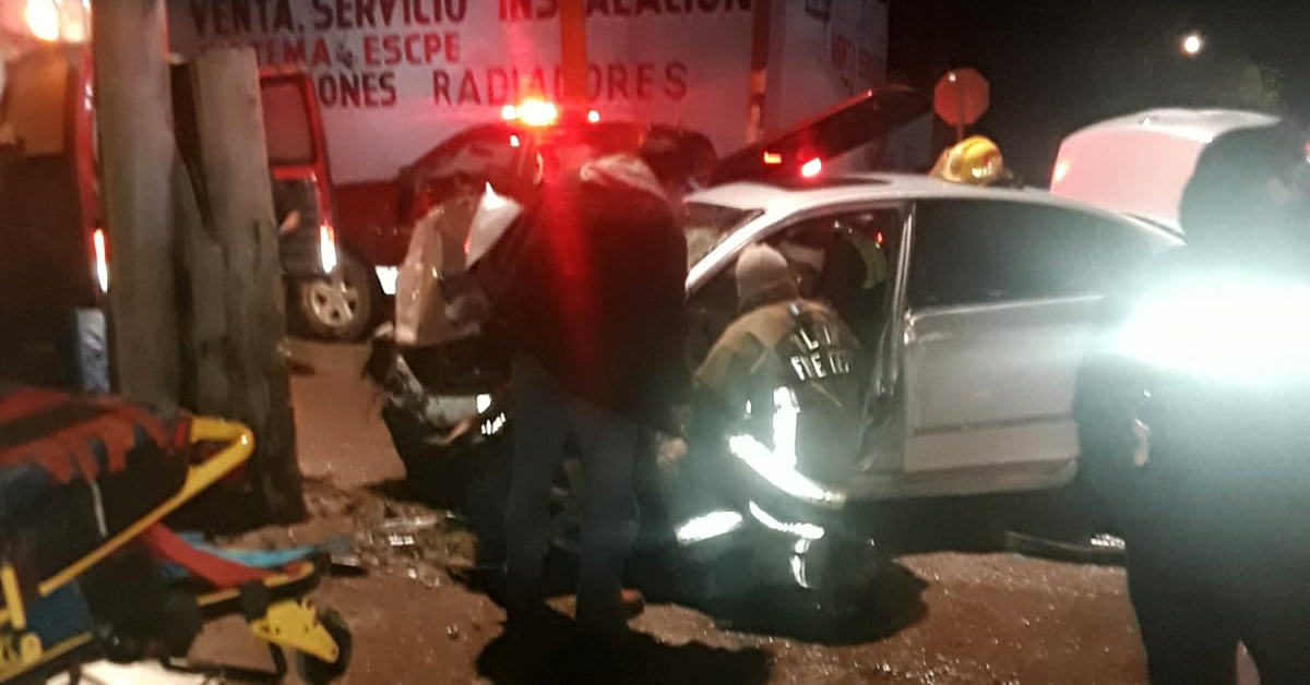 Este accidente ocurrió sobre la avenida Mendoza Berrueto con dirección a la colonia Los Espejos a una cuadra de los rieles. Un Nissan Altima color gris de placas 697RCP2 se impactó contra otro taxi y salió disparado contra un poste de madera. Un tercer auto estacionado también se vio afectado en la carambola.